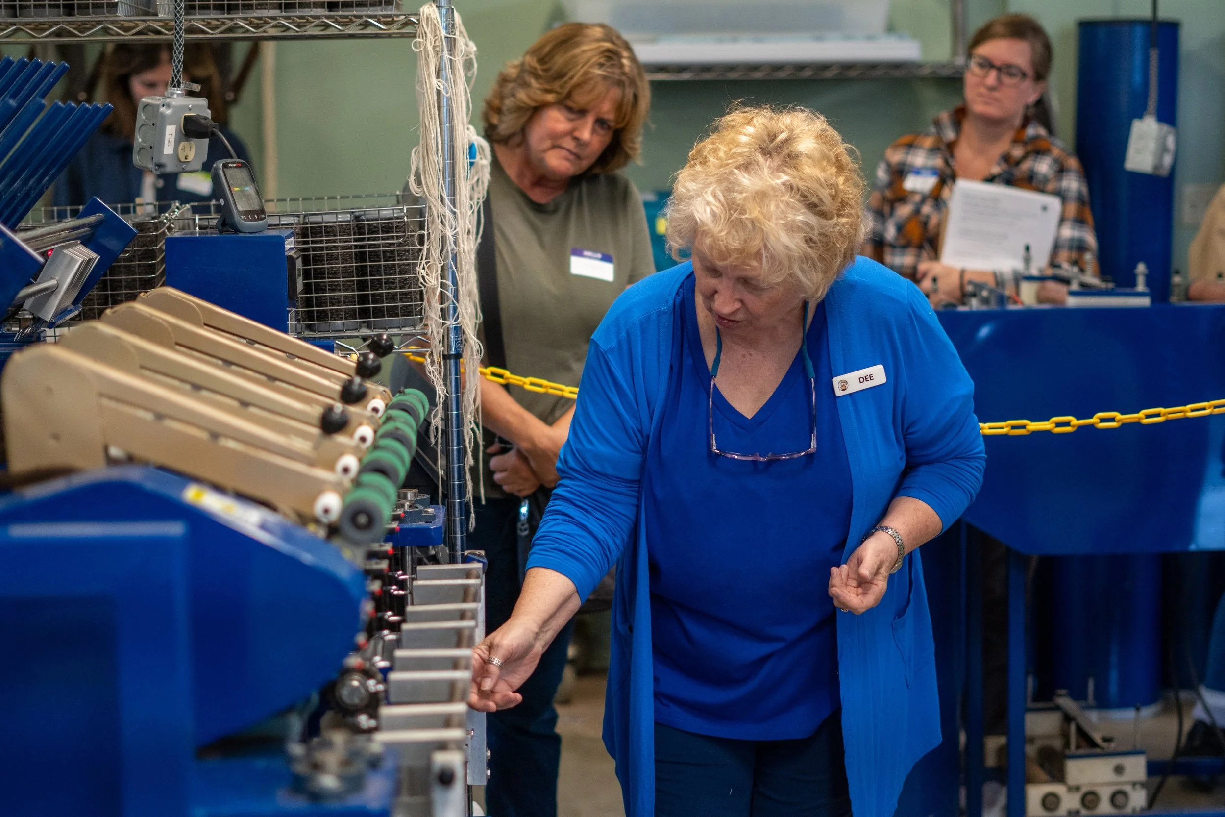 Next came one of the day’s most anticipated experiences: a tour of Willow Creek’s onsite Belfast Mini Mill. Guided by farm co-owner Melissa Smith, attendees explored how raw fleece is transformed into batts, roving, and yarn under the farm’s Born, Shorn, Milled & Spun ideology. Melissa shared practical advice for farmers hoping to maximize their returns when sending wool to a mill—tips on cleanliness, expectations in wool volume loss in the production process, and communicating with mill operators to ensure the best possible processed fiber comes back.